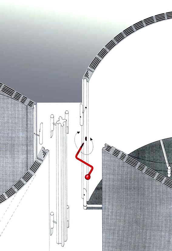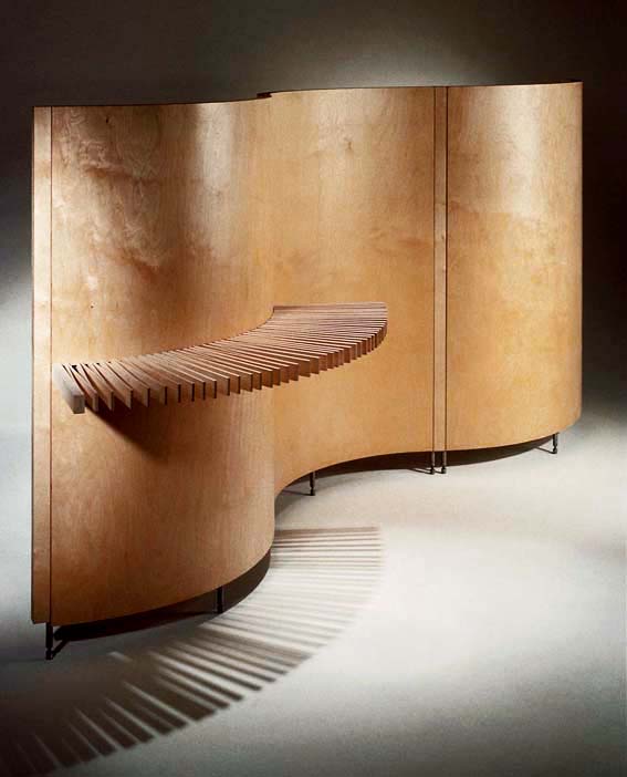 Wandsystem 090: Patentiertes biegbares Flächensystem. Die Wandelemente lassen sich stufenlos